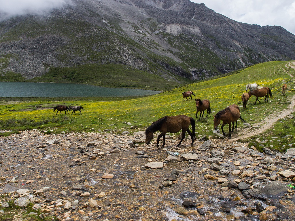 This was my most extensive hike which actually required some planning (you should at least take a look at the map). The distance was totally 40 kilometers. While I did it in one day, it would be pleasant to stop and spend a night next to one of the three gorgeous glacier lakes. Except one Tibetan family of horse herdsmen there was no one.