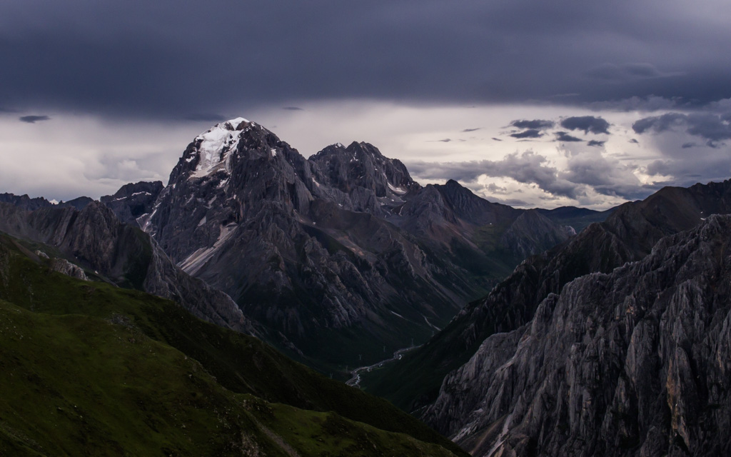 This was my most improvised hike. I ended up sleeping in a ruined house of an abandoned village. When you make your way to the Ganzi monastery, amazing view to Gongga Shan range with white peaks opens to you. I roamed towards the range and ended up climbing up to 4900 meters to what I believe is called Mount Caodala. This peak is almost as high as Gongga Shan range while there is no need to climb any dangerous rock or glacier. I got an amazing 360-degree view and even better sunset light.